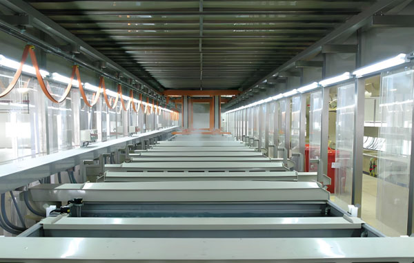 ανοδίωση, χρωματισμός (προαιρετικό), σφράγιση και εκφόρτωση. Εξοπλισμένο με αυτόματο σύστημα ανύψωσης, ανορθωτές ακριβείας,